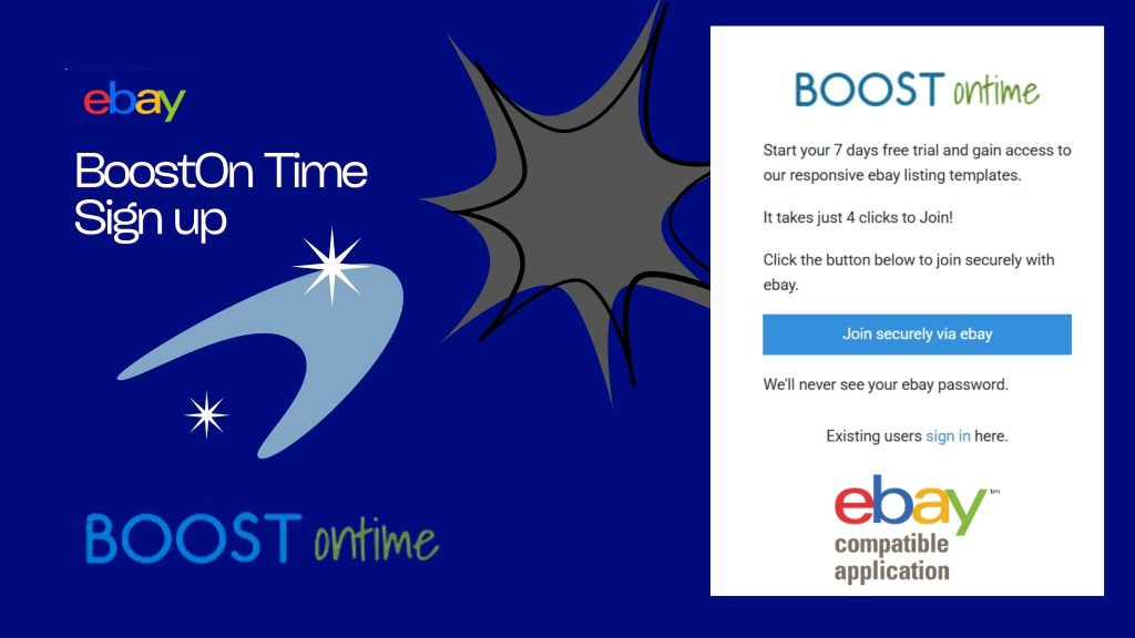 Getting started takes less time than writing a product description. Visit BoostOntime, enter your eBay username and email, and you’re in. No payment information required, no surprise charges, no tricks.